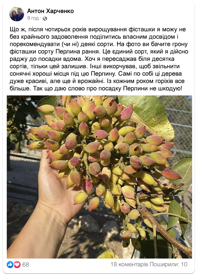 З 1 саджанця ви можете отримати від 16 кг фісташки щосезонно.