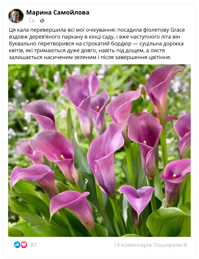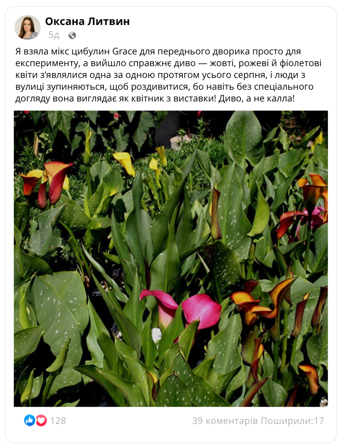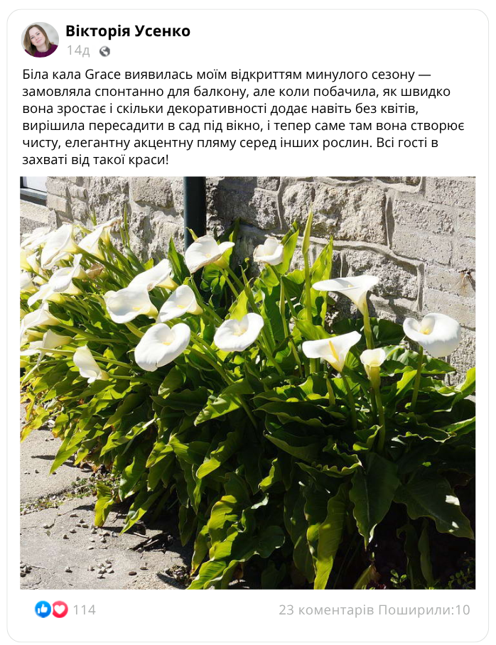 Гібрид легендарної ефіопської кали (Zantedeschia aethiopica), адаптований до українських умов!