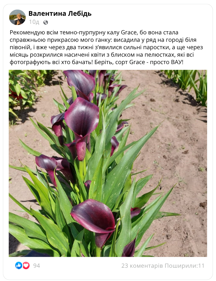 Обираючи кали сорту «Grace», ви отримуєте не лише елегантні квіти з багатою палітрою кольорів, але й можливість створювати вишукані композиції у вашому саду!