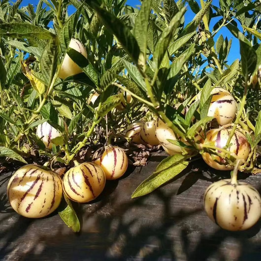 Пепіно «Голдан» – унікальний екзотичний сорт, що поєднує в собі ніжний аромат дині, солодкість манго та легкі грушеві нотки. Його плоди мають яскраво-жовтий колір із фіолетовими смужками, що робить їх не лише смачними, а й декоративними.